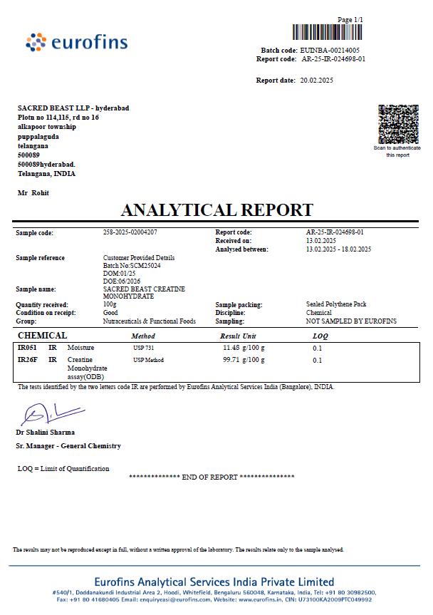 Sacred Beast Creatine Monohydrate – Pure & Premium
